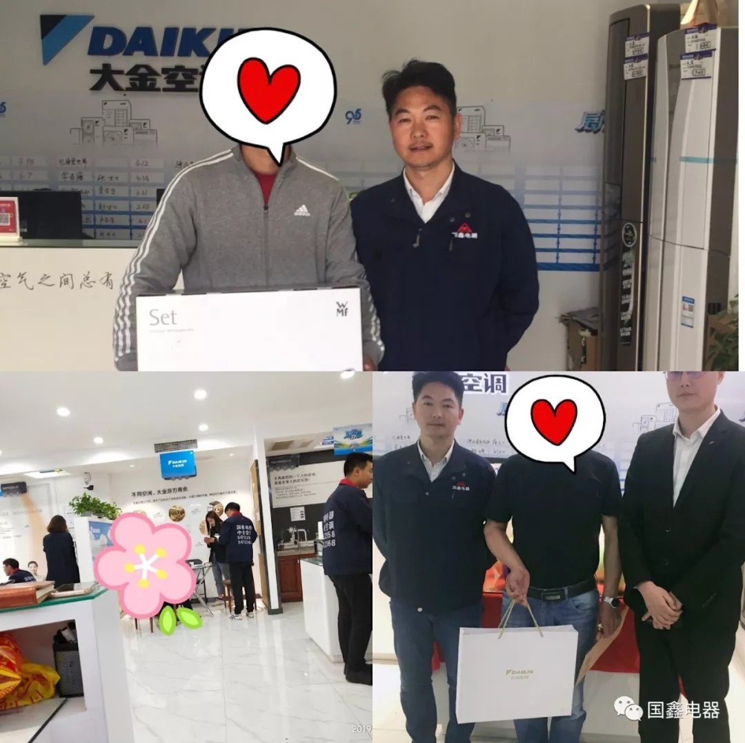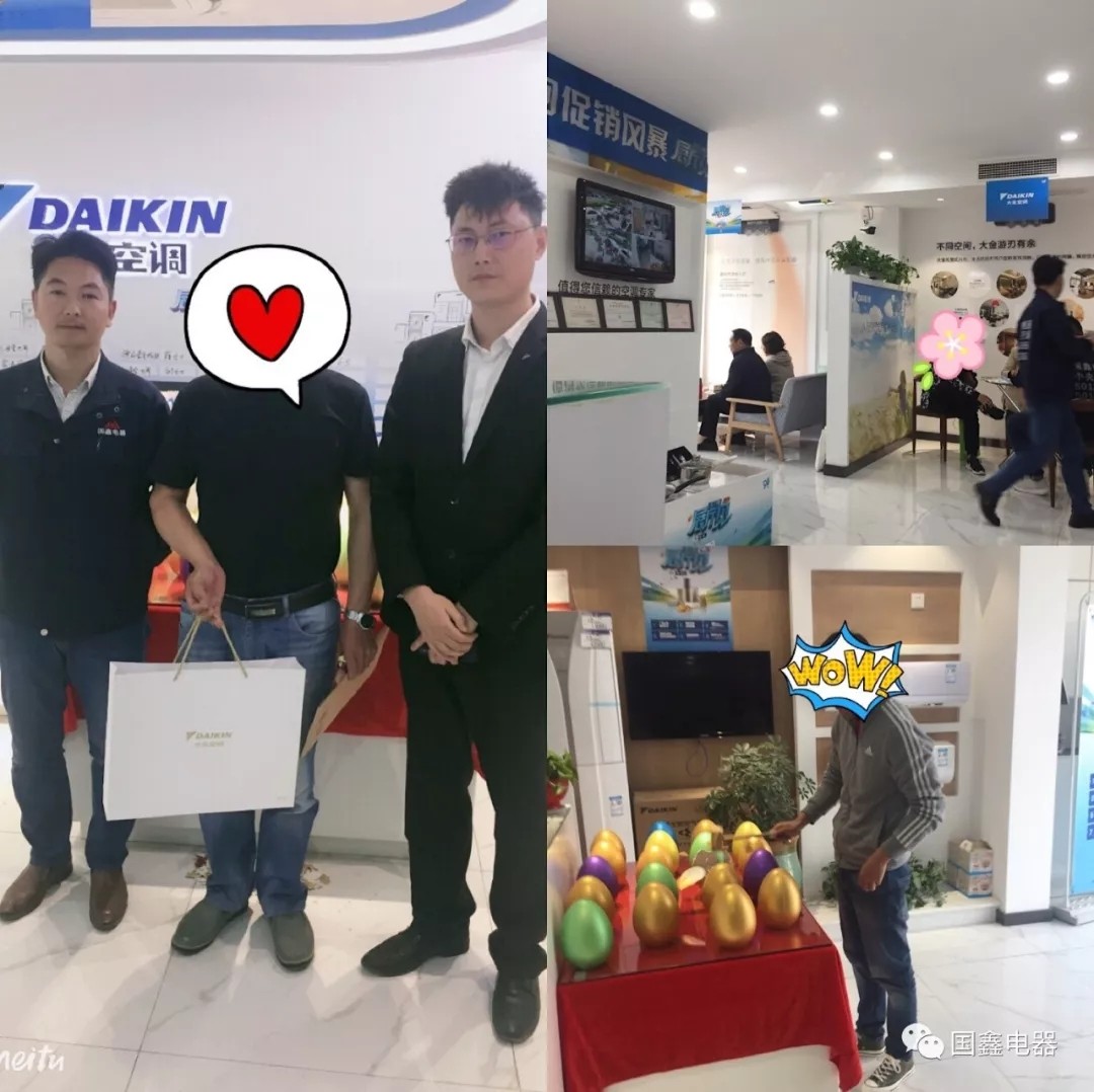 恭喜新鄉市國鑫電器在各位業主朋友、大金廠家領導的協助下,在419日、20日、21日三天圓滿完成大金空調春季展廳見銷售任務。