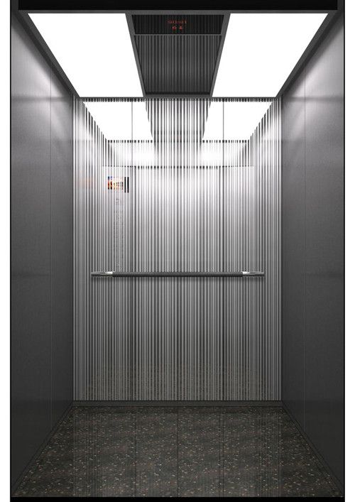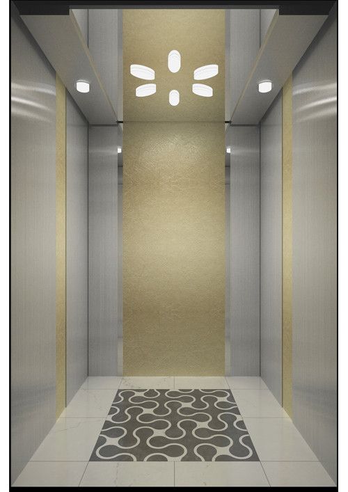 天井:ECO-XY,鏡面不銹鋼  前側板:彩紋鋼板(YP08)  門楣:彩紋鋼板(YP08)  兩側:彩紋鋼板(YP08)+鏡面不銹鋼飾條  后側板:彩紋鋼板(YP08)+鏡面不銹鋼  轎門:彩紋鋼板(YP08)  操作盤:BM-D2F9(鏡面不銹鋼)  扶手:WIN-002(發紋不銹鋼)  地板:PVC(FL-P14)