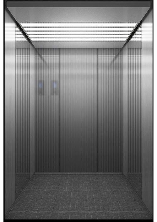 天井:ECO-MY;發紋不銹鋼+鋼板烤漆(BN-10)  前側板、門楣:發紋不銹鋼  兩側:彩紋鋼板(KB19)+發紋不銹鋼+鏡面飾條  后側板:彩紋鋼板(KB19)+鏡面不銹鋼  轎門:發紋不銹鋼  操作盤:BC-D2F2  地板:PVC拼花(FL-PH25)