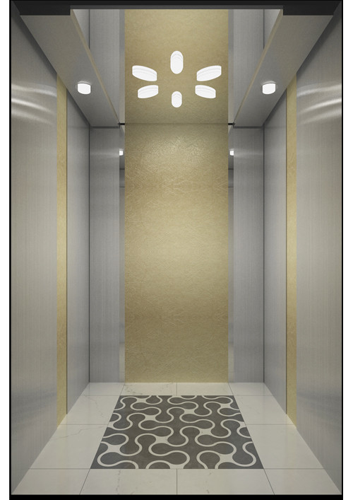 轎廂款型:林澗陽光  天井ECO-LJ,金屬烤漆(YM-14)+鏡面不銹鋼  前側板、門楣發紋不銹鋼  兩側發紋不銹鋼+鏡面不銹鋼  后側板彩紋鋼板(KE11)  轎門發紋不銹鋼  操作盤BC-D2F2  地板PVC(FL-P30)  踢腳板發紋不銹鋼